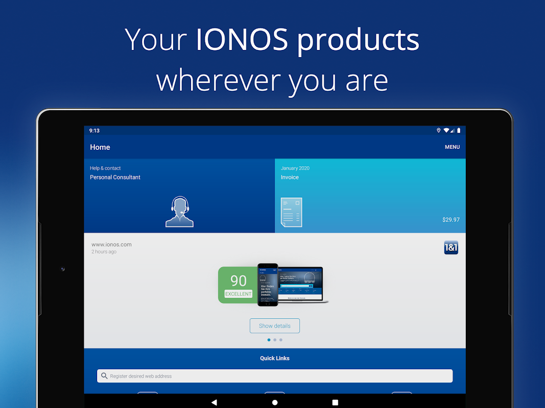 • Use and manage your IONOS products from your mobile device