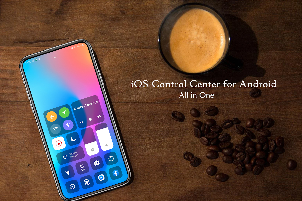 iOS control center for Android (iPhone X, iOS 12, 13 background) - easy, smooth and gathered all essential apps & features in 1 center.