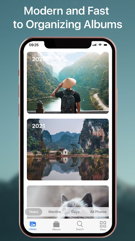 - Enjoy a curated view of your moments in the Library tab, then browse by years, months, days, or all photos.