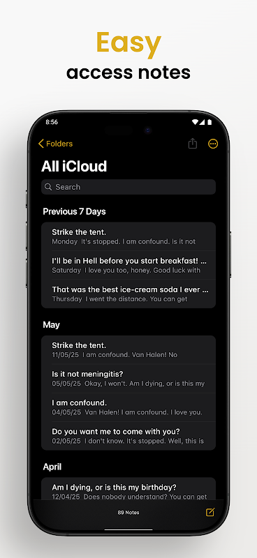 Disclaimer: This app is not affiliated with Apple or the official iOS Notes app. It is independently developed to offer a similar experience for Android users. All trademarks and product names are property of their respective owners and used for descriptive purposes only.
