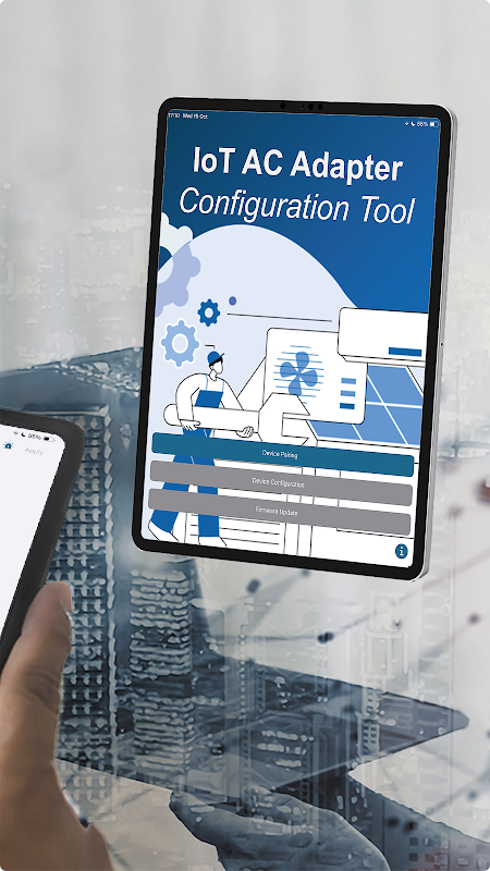 The IoT AC Adapter Configuration Tool is a mobile application designed to commission and configure a Wi-Fi-enabled AC communication interface that integrates HVAC indoor units into cloud-based building management systems using the MQTT protocol. It enables secure and seamless setup of HVAC connectivity, allowing remote monitoring and control through cloud services.