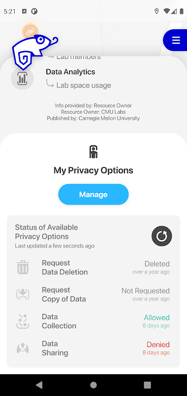 An IoT portal associated with the app (https://www.iotprivacy.io) is available to also publicize the presence of IoT technologies collecting our data, whether you are the administrator controlling that technology or a volunteer contributor. Once you have defined an entry for an IoT technology through our portal, IoT assistant app users can discover this IoT technology and its data collection and use practices.