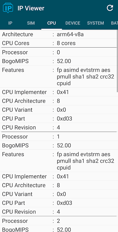 Info about your IP, Phone, Sim, CPU, system, device, battery, sensor...etc