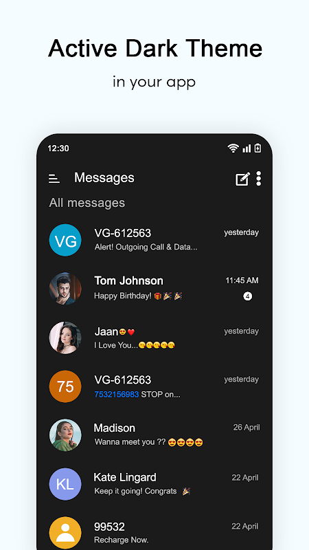 * You may change the background picture in your own choices, or apply the system theme change to give a different look to your Messaging app.