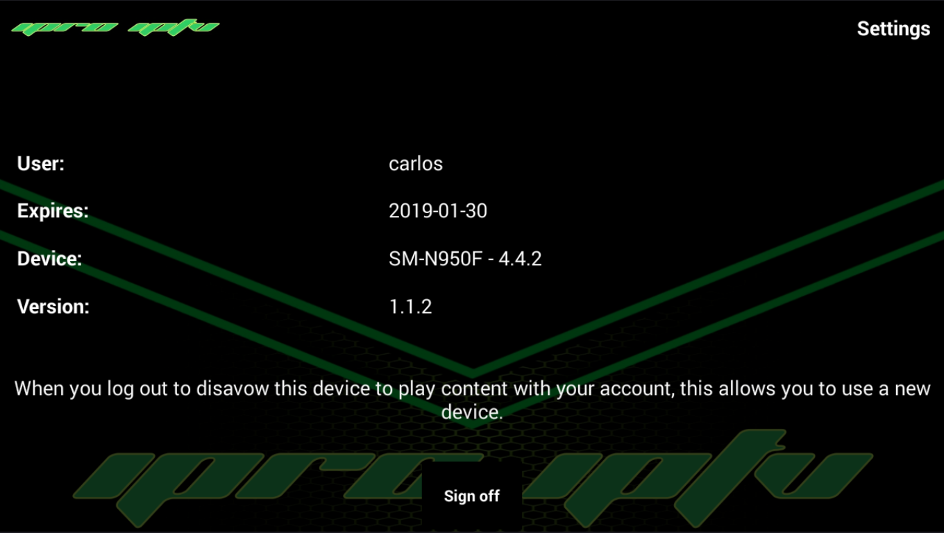 Aplicacion privada del servicio iPRO IPTV