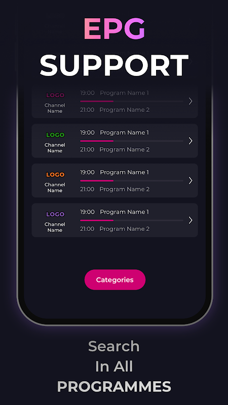 - EPG for your live TV channels