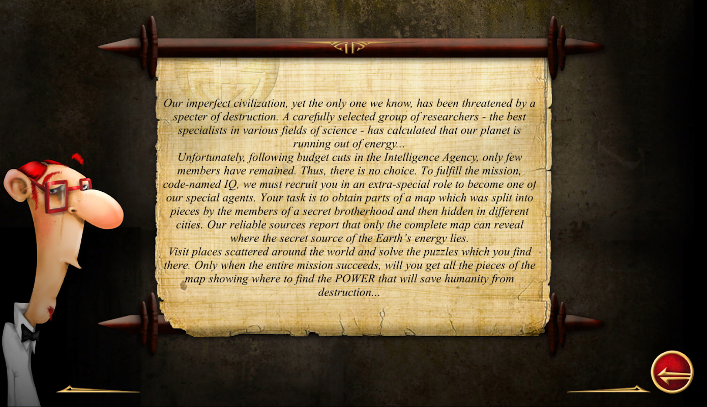 In an extra-special mode, we recruit you to become a special agent. Will you take on the job? Your first mission is code-named IQ. Visit eight cities and solve the puzzles encountered there. For completing each task, you will get a part of a map. Our reliable sources report that only the complete map can reveal where the secret source of the Earth’s energy lies. Only you can meet this challenge!
