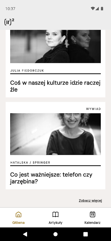 The application allows you to view and read text content published on the ir2.info portal. Users will have access to promoted content and display a list of articles from which they will be able to go to the content of a specific article.