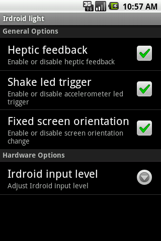 Control RGB Led stripes and RGB Led bulbs.Before you install/rate this APP, please make sure that you have an Irdroid module!!!. Turns your phone into infrared remote control for your led lighting. Control your LED lighting from a distance.