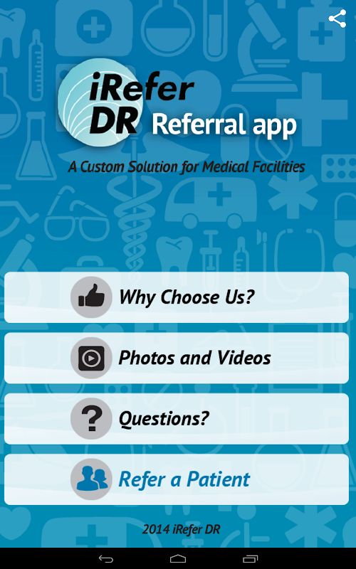 iReferDR's App for referrals. This app includes various levels of information, a photo gallery, a video, and a referral form. If you are interested in purchasing your own a custom referral app, visit www.iReferDR.com.