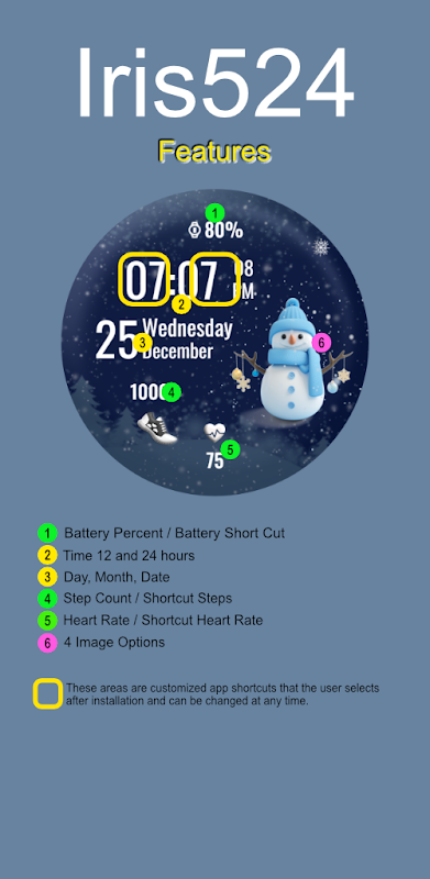 This makes Iris524 an appealing choice for users looking for aesthetic customization in a watch face.
