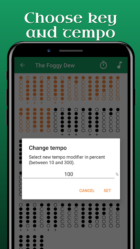 To play along, you can change the whistle key (high D by default) and the tempo. A delay can be added to get time to pick up the whistle.