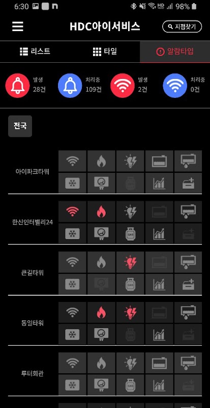 -Tile display: By expressing the name of the alarm management area and base in tile form, you can easily find the desired area, base, and location.