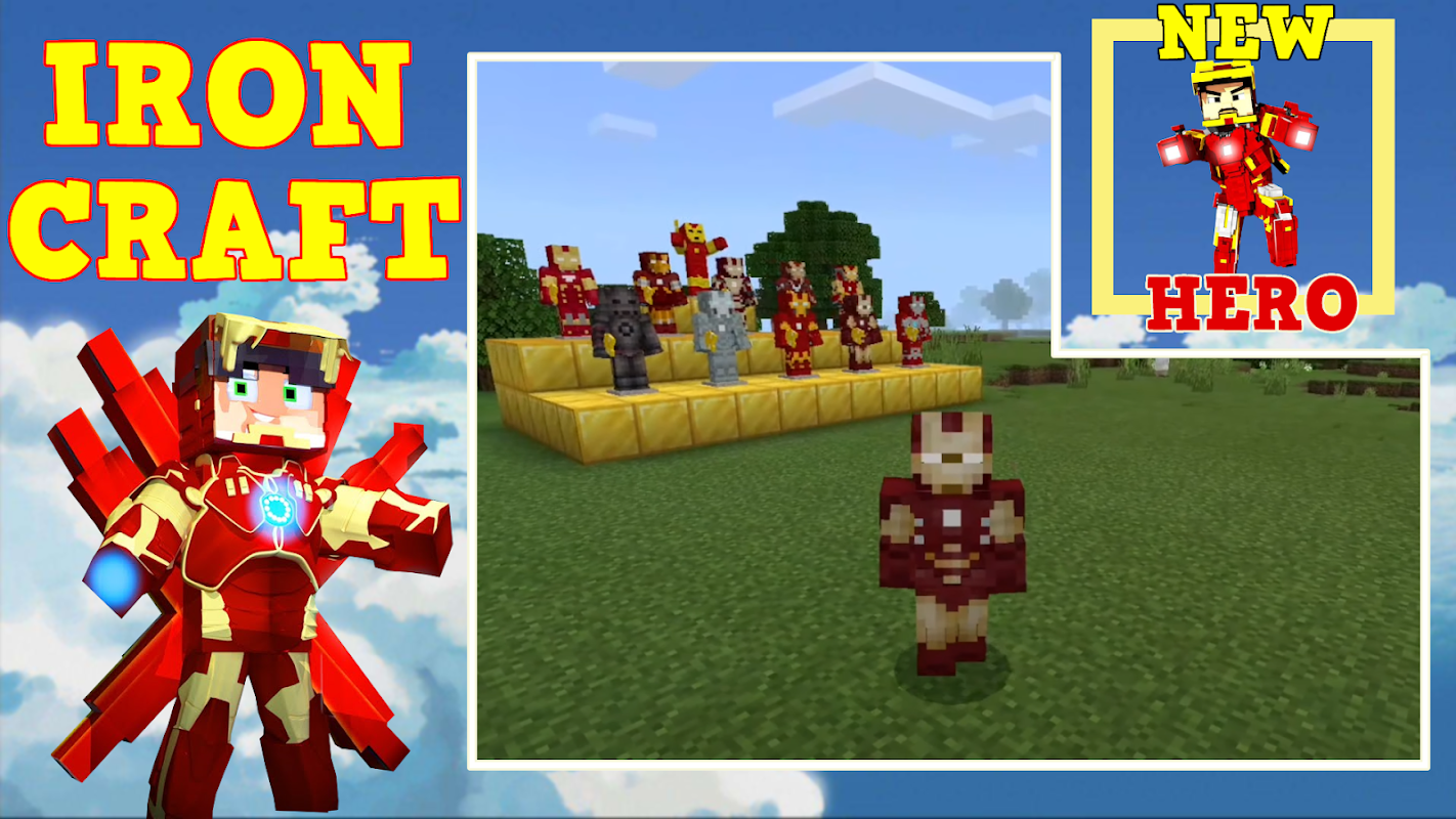 You will receive a superhero costume (modified armor) that looks very challenging and will surely decorate your skin. The game will become easier because you can move through the air even in survival mode and quickly overcome biomes and just fly above the clouds. In this unique application, you can test lasers, missiles, as well as smart stark technology. An assistant robot will help you cope with an impending threat. All functions are free and do not require complex crafting recipes in the game. If you can craft generators and craft diamond armor, you can become an iron man. Netherite armor will allow you to become a spider-man in one click, iron armor - captain America, each suit will give you the opportunity to continue the adventure from the comic only in the game and you can create your own new unique story of adventures and high-profile victories. On any map, you will be the most popular in the new skin and the most recognizable. You can become an avenger and protect villagers from creepers, endermen and ender dragons. Each suit has a source of energy and magical skills. Your speed will go to a new level and enemies will see only a flash and a flying cloak. Each texture is adapted to the pixel world and looks great. High-tech suit armor will give new emotions from the game. Invite your friends and start a race for infinity stones or just blocks and resources to build stark towers or just run away for superheroes.