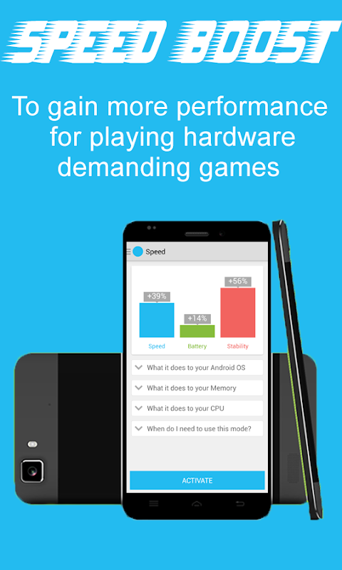 Even if you don't want to manage apps individually, iRoot gives you an option to Activate different modes like Speed Boost, Battery Boost or Stability Boost Mode and just leave the rest on our algorithms. User have to decide that which mode is best for them. Our most efficient algorithms optimizes CPU governor, RAM, VM Heap Size, etc. Find out what all these technical terms means in the "Tutorial" section of the app.