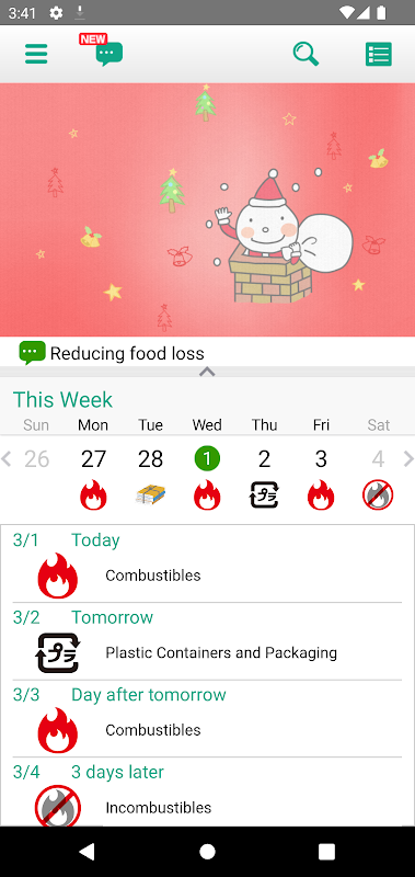 You can check announcements concerning changes in the collection schedule and information on special events.