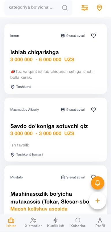 🔎 Tezkor ish qidirish – turli sohalardagi minglab e’lonlar orasidan o‘zingizga mos ishni toping.
