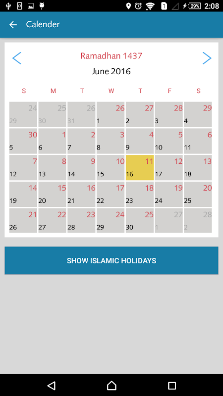 a- Switch between Islamic and Georgian Calendars.
