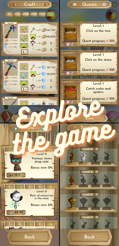🌴 Explore the Island: Chop down your first tree, crack open your first stone, and step by step, delve deeper into the mysteries of this enigmatic island. The further you venture, the more resources you find, and with each upgraded tool, you become even stronger!