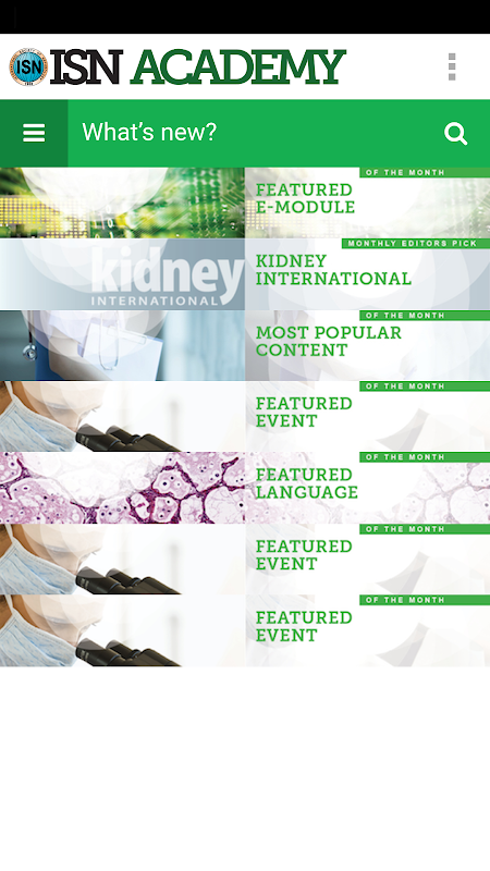 ISN Academy App, the official mobile learning app of the International Society of Nephrology (ISN), offers access to thousands of educational materials and activities published by ISN over the years such as eLearning Programs, Accredited Lectures, Self-Assessments, Learning Quizzes, Webinars, Asynchronous and live Webcasts, ePosters, Video Techniques, Documents, Abstracts, Expert opinion videos and editorials, and more...