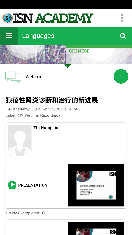 The official Mobile Learning App of the International Society of Nephrology
