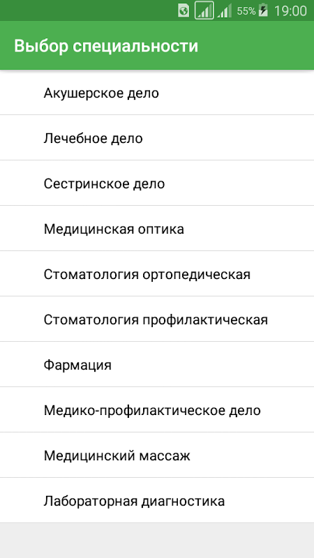 Nell'applicazione, i test sono disponibili nelle seguenti specialità: