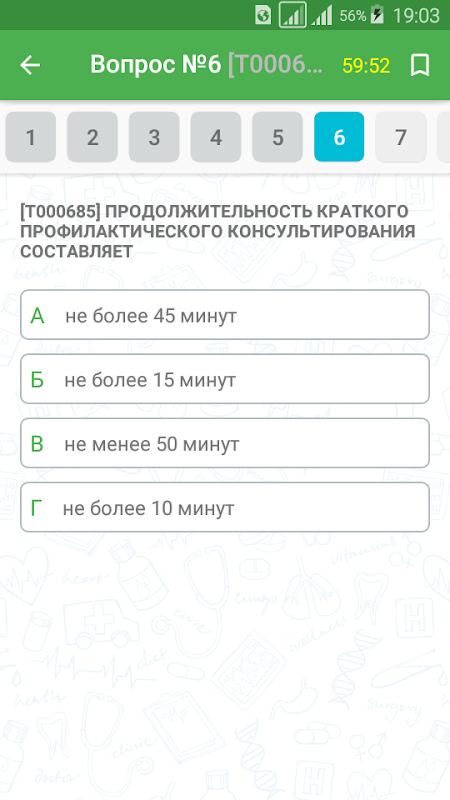 • Test - Creato per controllare la conoscenza. Si propone di risolvere domande selezionate a caso dal blocco selezionato. Con il 50% di risposte corrette, si considera che questo blocco è stato studiato abbastanza e questa gamma di domande è contrassegnata come completata;