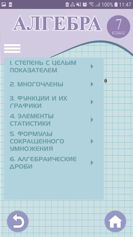 "Algebra 7" è un'applicazione mobile per il libro di testo "Algebra. 7 ° grado"