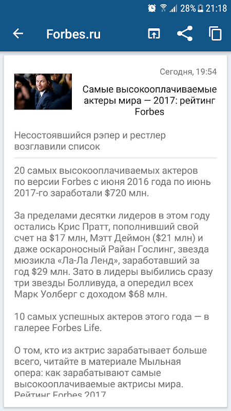 * Все новости сохраняются в базе данных на телефоне. Доступен просмотр в оффлайн режиме.