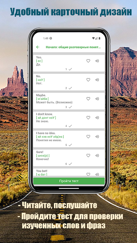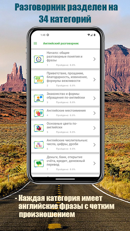 Ogni categoria contiene le frasi e le parole necessarie con trascrizione e pronuncia chiara e puoi anche condividere o salvare la parola o la frase di cui hai bisogno nelle tue note.