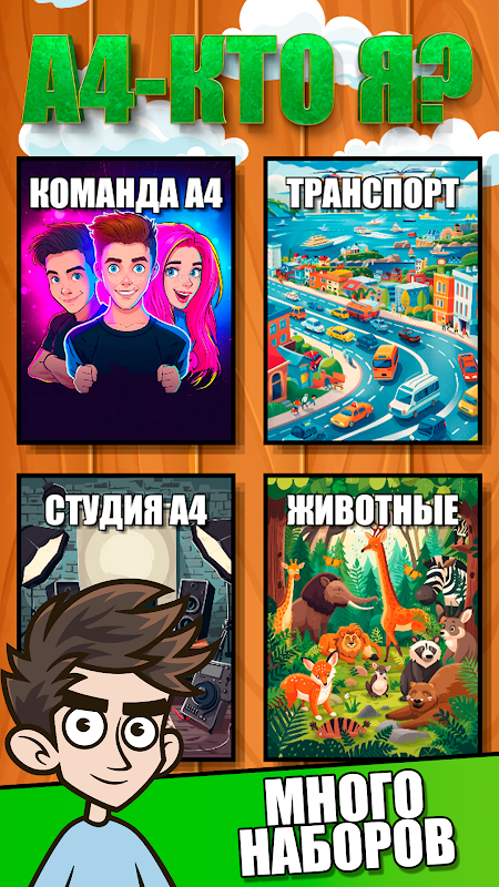Nel gioco "A4 - Chi sono io?" ti immergerai in un mondo divertente e interessante dove potrai giocare insieme a Vlad A4, Glent, Rivi, Serega e altri personaggi famosi del mondo di A4.