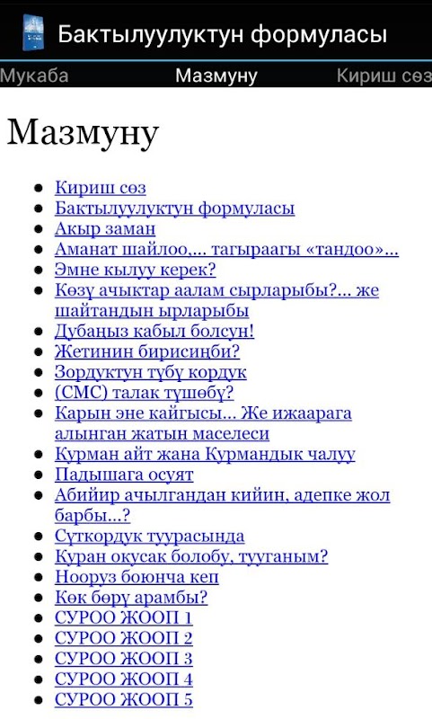 Chubak aji Jalilov "Baktyluuluktun formulasy". Bishkek 2014