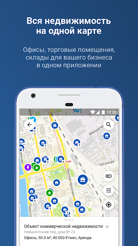 · Built-in di ricerca per immobili. Sulla mappa, si vedrà lo spazio libero che può essere affittato per il vostro business. E 'aggiornato due volte a settimana.