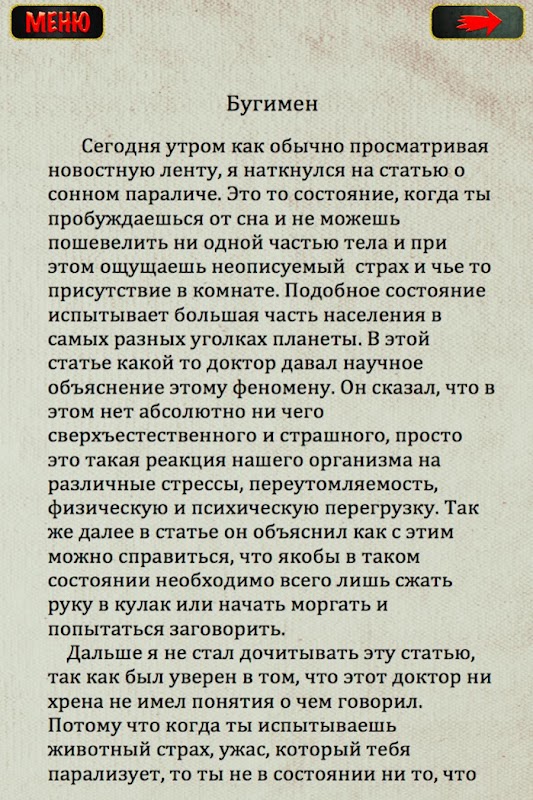 Мы озвучили для вас наш рассказ и представили в приложении оба варианта - аудиокнигу и печатную версию. Так, что вы можете послушать или прочитать нашу историю о Бугимене.