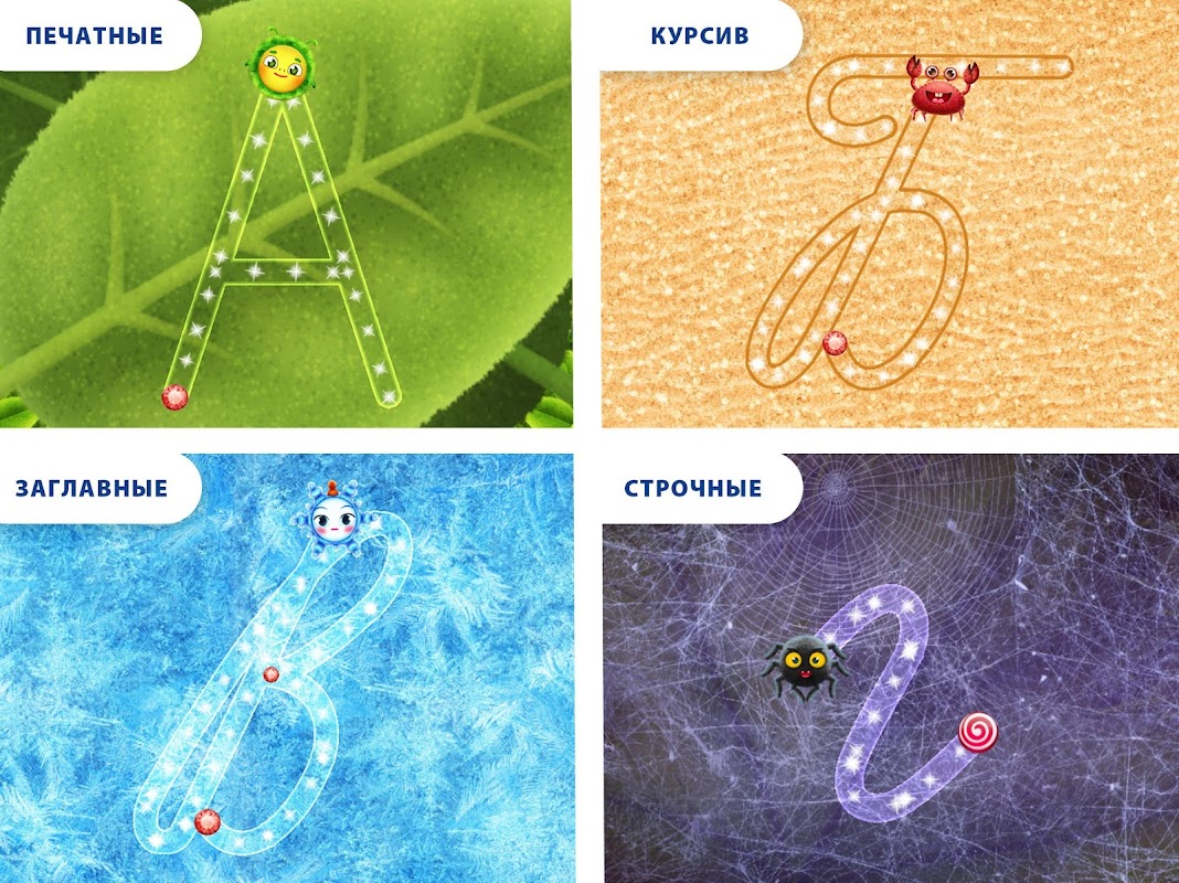 Con l'app "Bukvonyamki" il vostro bambino ad imparare a scrivere lettere. personaggi divertenti lo aiutano. Insieme con il bambino fiocco di neve scriverà su vetro, coperto di brina. Per aiutare il bruco mangia foglie e masticare una mela e ragno peloso tessere una rete e granchio "uscita" a lettere d'oro su apprendimento divertente peske-!
