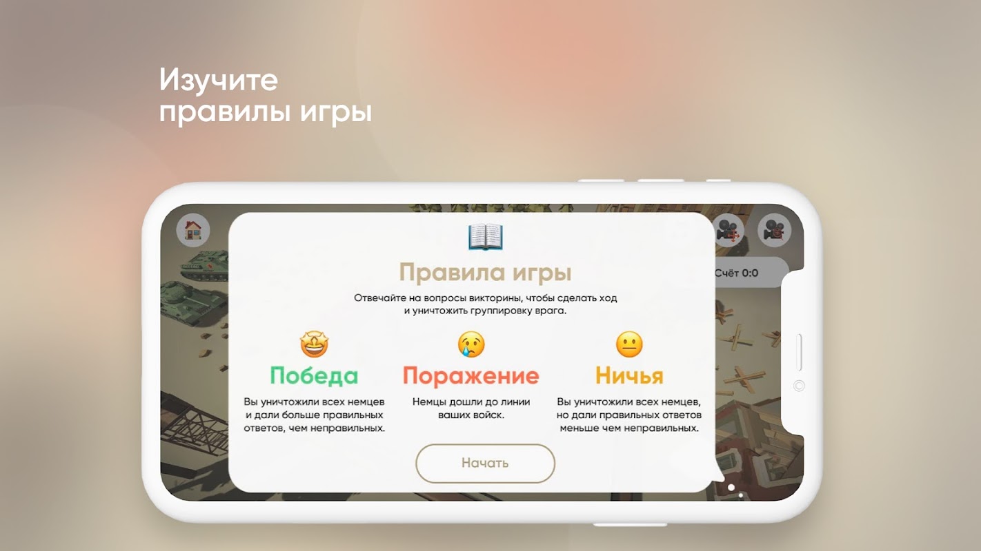 Il formato dell'app include quiz classici e meccaniche di strategia di guerra, mentre il gioco coinvolgente è combinato con contenuti educativi. Il Victory Quiz si basa sul principio dell'apprendimento giocando.