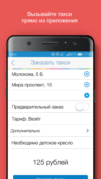 * Вызов такси не выходя из приложения.