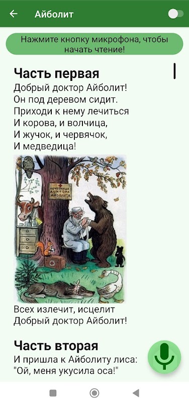 Scarica le lingue disponibili nella sezione "Download". Leggi fiabe, racconti, poesie. Il tuo tutor mobile ti aiuterà a pronunciare correttamente le parole e farà risparmiare tempo ai genitori. Intelligenza artificiale nel tuo telefono.