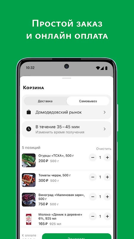 Applicazione mobile ufficiale per ordinare prodotti dal mercato Domodedovo