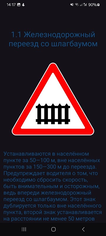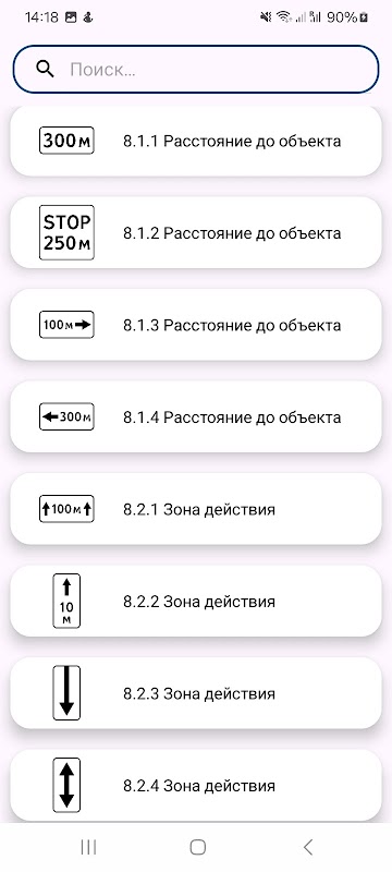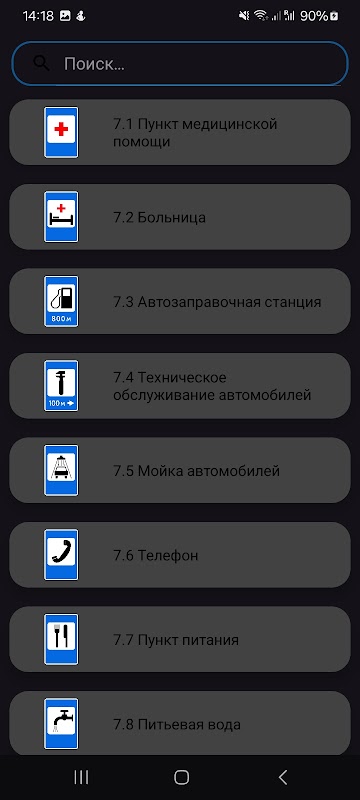 L'applicazione contiene un elenco, nomi, immagini, descrizioni di tutti i segnali stradali