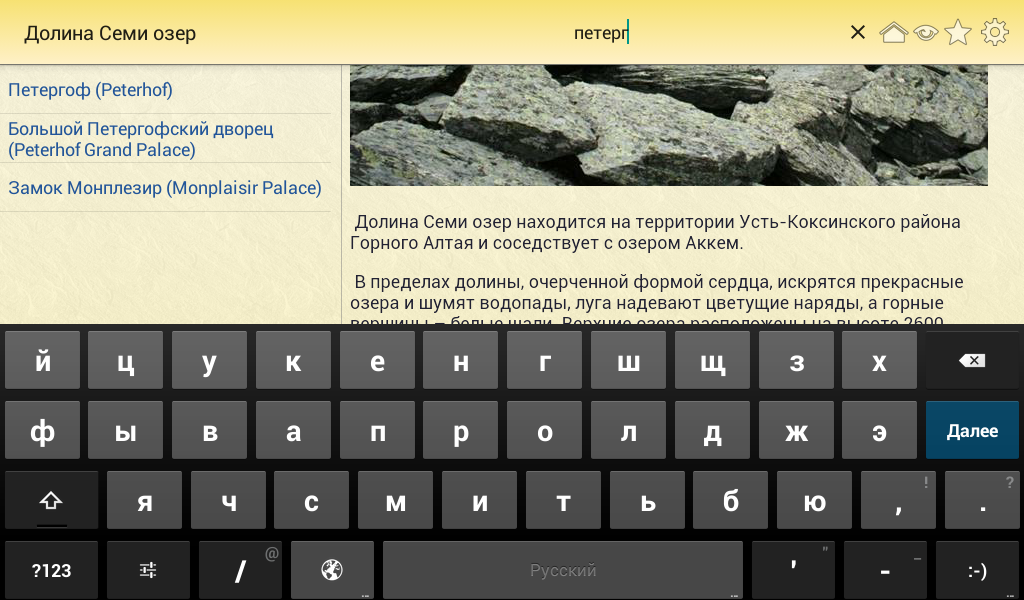 При желании можно найти все достопримечательности по областям или городам, достаточно в поиске набрать, например Москва, Санкт-Петербург.