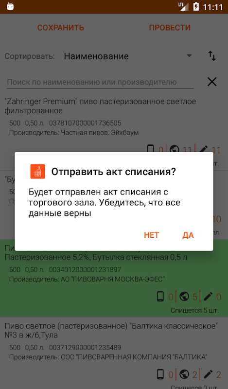 Инвентаризация остатков ЕГАИС посредством списания излишков или постановки на баланс