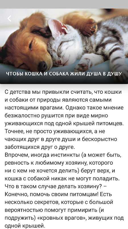 Приложение может быть использовано как читалка, которая будет всегда под рукой и будет помогать заботиться о вашей кошке или коте.