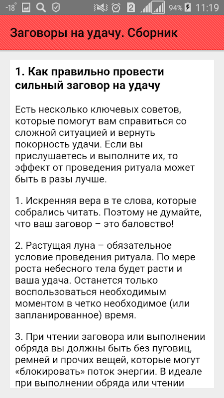 Informazioni sull'APK Заговоры на удачу. Сборник