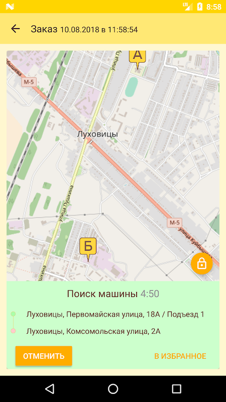Удобный интерфейс позволяет заказать такси быстро.