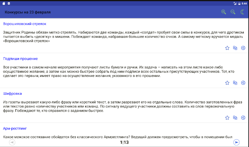 La collezione contiene giochi per feste a vari temy.Rabotaet senza internet
