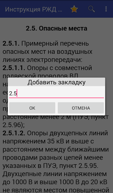 * Теперь для добавления закладки нужно выделить текст, нажать на "звёздочку", название закладки вставится автоматически, остаётся только нажать на "+" для её сохранения. Также можно скопировать выделенный текст и вставить его в поле "название" закладки или набрать его вручную.