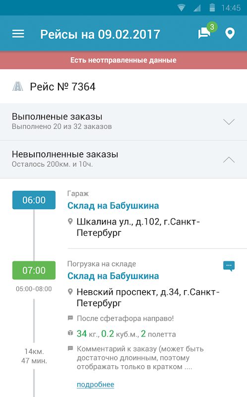 L'applicazione invia la posizione corrente, la velocità e l'attività del conducente al server Logistic Tools 24 in background. Sulla base di questi dati, le previsioni dei tempi di arrivo vengono ricalcolate sui waypoint rimanenti.