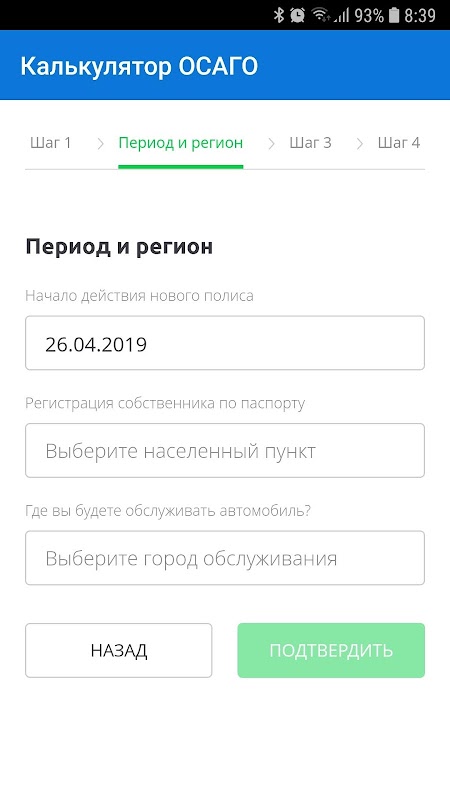 Per ulteriori acquisti della polizza utilizzando la nostra applicazione, è necessario specificare la marca e il modello dell'auto, specificare le informazioni sul proprietario, la sua età, esperienza di guida e scegliere la migliore offerta tra le compagnie assicurative leader.