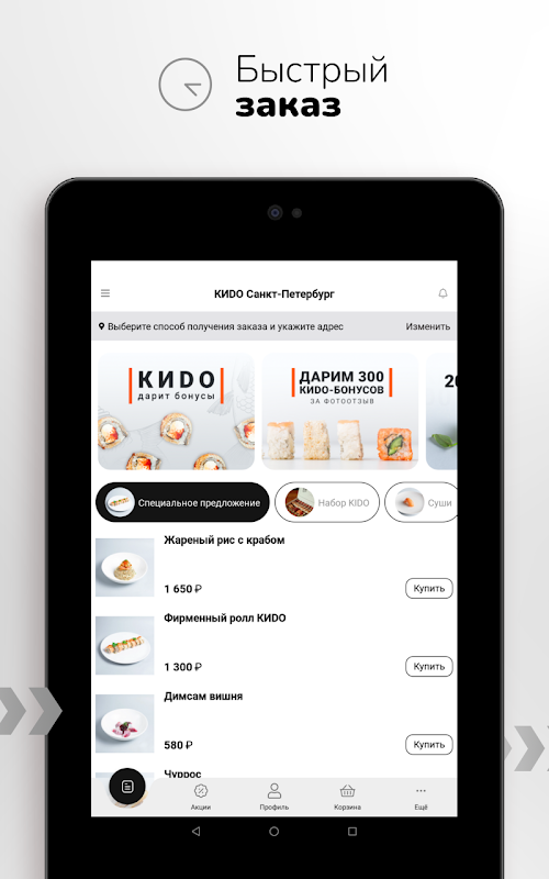 Per tua comodità, abbiamo lanciato l'applicazione mobile "KIDO". Non c'è più bisogno di chiamare da nessuna parte! Installa l'applicazione gratuita sul tuo smartphone e ordina la consegna di sushi, panini, wok in qualsiasi momento conveniente in pochi clic!